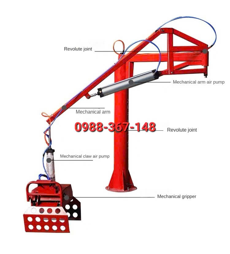 - Cánh tay robot: Kết nối với bộ gắp nâng bao tải 1 cách nhẹ nhàng linh hoạt, không cần sức người